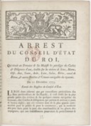Titre(s) : Arrest du Conseil d'état du Roi, qui réunit au domaine de Sa Majesté les privilèges des coches & diligences d'eau, établis sur les rivières de Seine, Marne, Oise, Aine, Yonne, Aube, Loire, Saône, Rhône, canal de Briare & autres rivières & canaux navigables du Royaume [Texte imprimé]. Du 11 décembre 1775